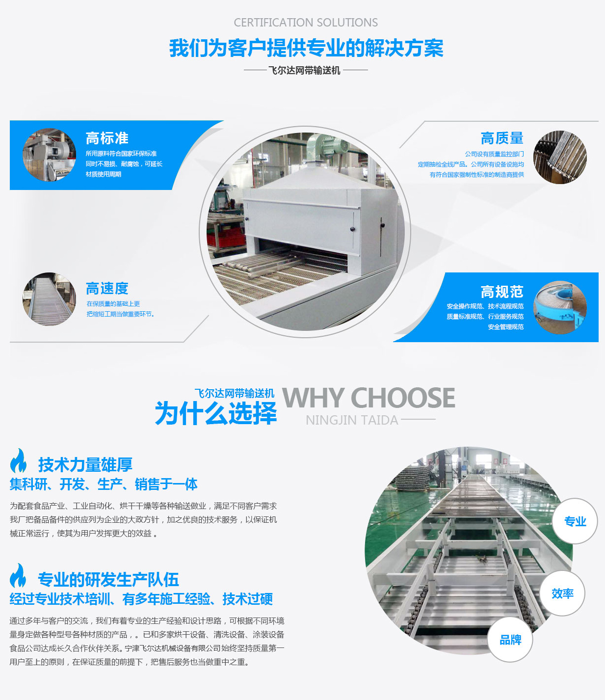 寧津飛爾達機械設備有限公司始建于1997年,位于山東省寧津縣經濟開發(fā)區。本公司以生產制造金屬類網帶、鏈板、鏈條為主導產品。 建廠近20年,已和多家烘干設備、清洗設備、涂裝設備、食品公司、工業自動化達成長久合作伙伴關系。在保質量、保工期的基礎上更把售后當做重要環(huán)節(jié)。 本廠配件系列有:輸送網帶、輸送鏈板、輸送鏈條、乙型網帶、烘干網帶、清洗網帶、不銹鋼鏈板、沖孔鏈板、排屑鏈板。 設備系列:網帶輸送機、鏈板輸送機、烘干輸送機、清洗輸送機、轉彎輸送機。